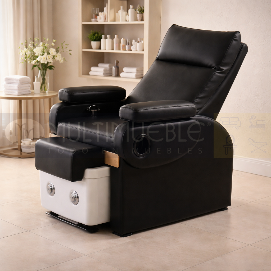 Este producto es un sillón de pedicura y masaje profesional diseñado para uso en spas y salones de belleza. Combina funciones de relajación y cuidado personal en una sola estación de trabajo ergonómica.