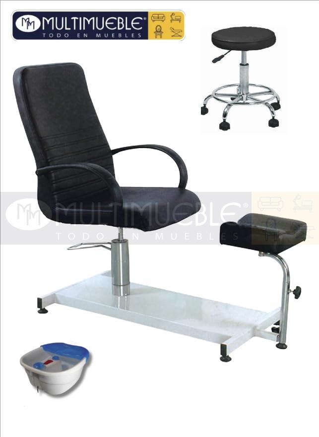 Estación de pedicura hidráulica, diseñada para su uso en salones de belleza o spas. Este tipo de mobiliario suele incluir una silla para el cliente, un reposapiés ajustable y, frecuentemente, se complementa con un taburete para el profesional y una tina de hidromasaje para pies.